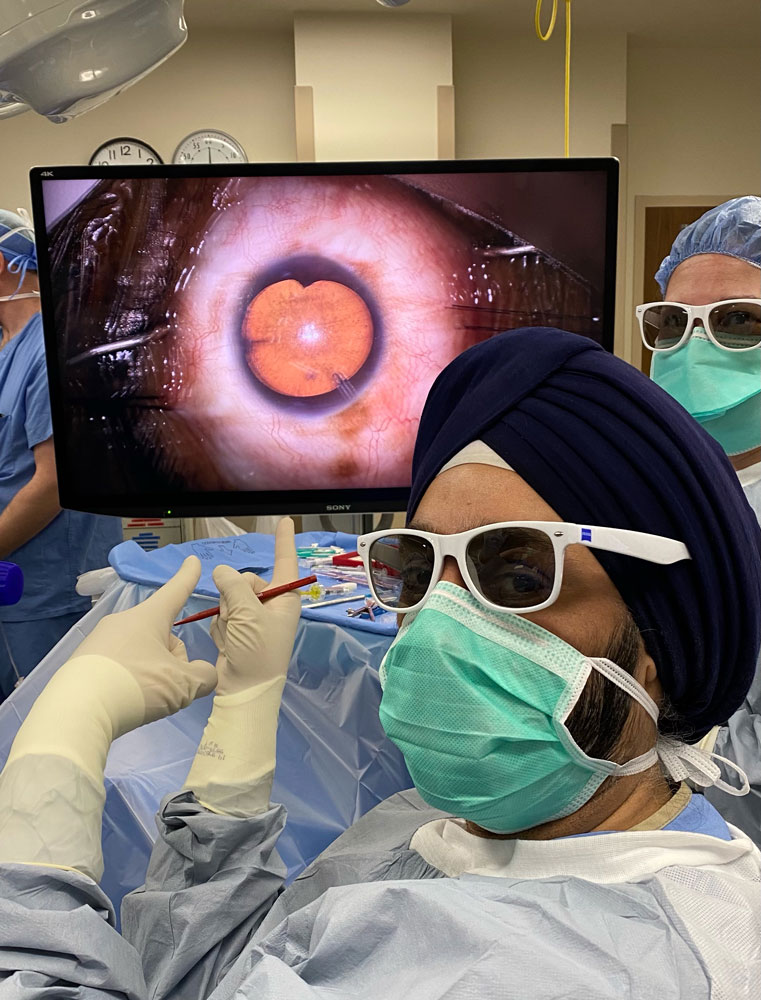 Dr. Singh uses the 3D microscope that will be in his office-based OR.