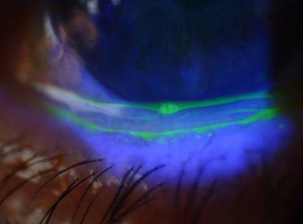 Clifford Salinger, MD, said that fluorescein stain and a yellow filter are his most helpful tools in visualizing the rugae and redundant conjunctival folds, and punctate conjunctival staining, which he thinks are the causes of many of the symptoms associated with this condition. Dr. Salinger described conjunctivochalasis as a form of โmechanical dry eyeโ where the normal position of the inferior tear meniscus is blocked by the redundant conjunctival folds, and the tear reservoir in the inferior cul-de-sac is also compromised by the presence of loose Tenonโs fascia and redundant conjunctiva. Without an area for the tear meniscus and tear reservoir to reside, there is not enough reserve tears and lubricants for the eyelid to pull up over and across the eye with each complete blink, thus contributing to the dry eye condition.