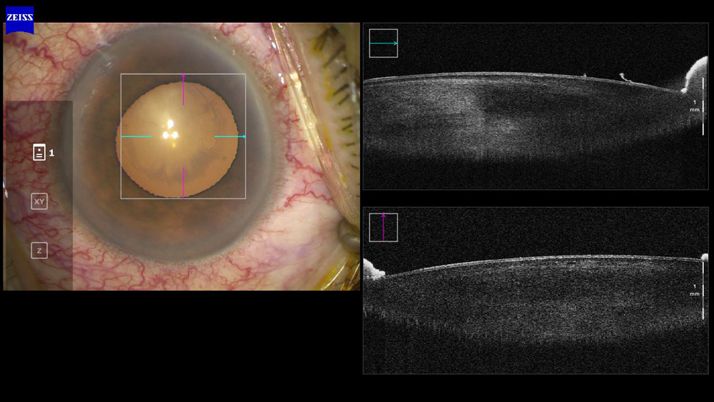 Dr. Yeoh also shared how he was able to image patients with anterior radial tears and posterior capsule ruptures, thanks to intraoperative OCT, when corneal clarity compromised the view or was just difficult to see. โThe intact posterior capsule is transparent and difficult to see even with a microscope, and sometimes we are unsure as to whether a posterior capsule rupture has occurred,โ he said.