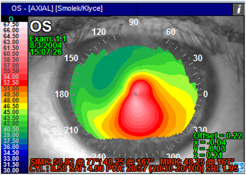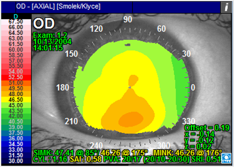 Dr. Klyce and Dr. McDonald provided a short history of the first correlations of corneal irregularities and vision, as demonstrated by corneal topography in 1996, and how it has evolved since. In that early work, irregularities in the mires were reflected in Placido images.