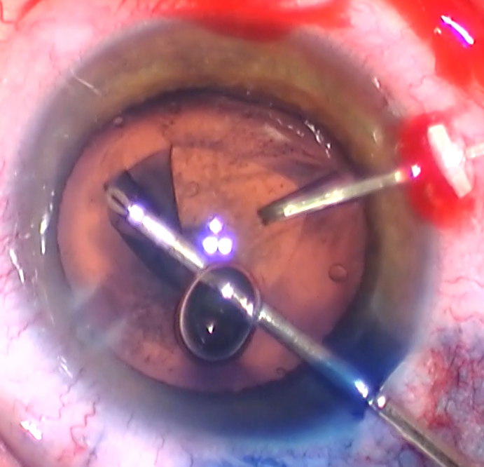 When choosing a lens, Dr. Kim said a three-piece acrylic IOL is preferable to a single-piece acrylic IOL. โIn my opinion, a three-piece IOL provides more equatorial capsule support due to the relative stiffness of the haptics,โ he said. โFurthermore, if the IOL/bag complex subluxates in the future, one can scleral fixate the existing three-piece IOL, which for me is the Sensar AR40 lens [Johnson & Johnson Vision], to perform the Yamane technique.โ